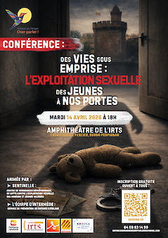 Conférence : "Des vies sous emprise: l'exploitation sexuelle des jeunes à nos portes"Avant de faire un compte rendu de notre conférence qui a particulièrement intéressé les 150 personnes présentes et les 95 étudiants de l'IRTS en visio conférence, nous vous invitons à lire l'article de "Made in Perpignan" qui résume bien l'essentiel.